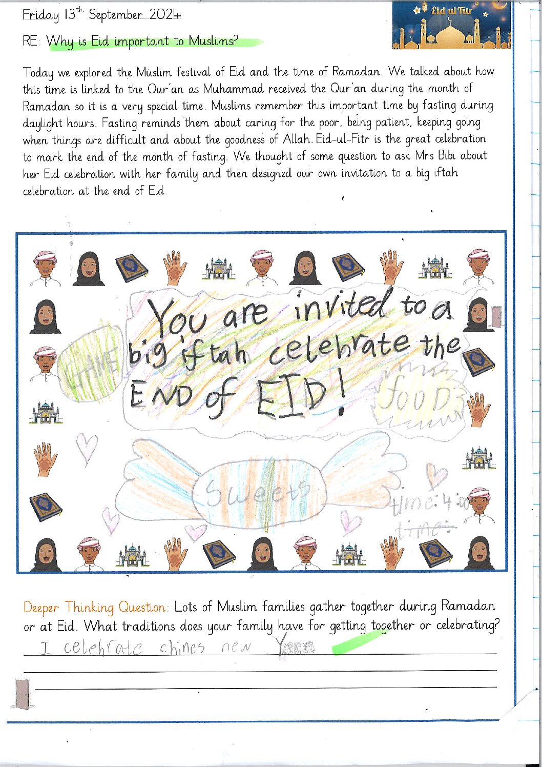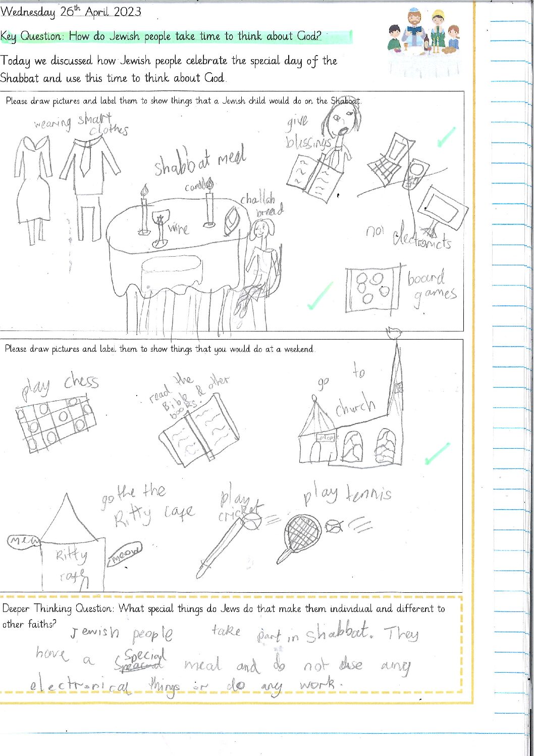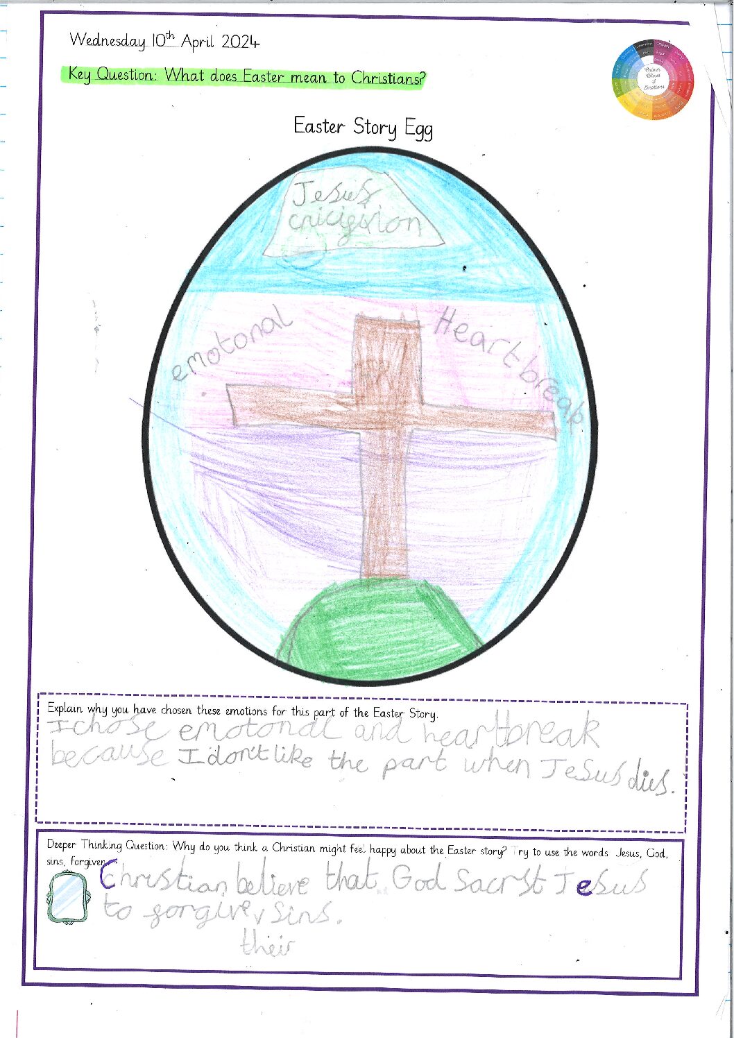All of the RE knowledge and skills is mapped out in our ‘Religious Education Progression Document’ and our medium term planning for RE. Instead of ‘Aims’ as learning intentions, we use questions to introduce the learning in lessons and measure their success based on how well children can answer them. RE units are planned by Senior Leaders and our RE leader, and with the support of the incumbent at St Mary’s Church. Throughout our RE learning sequences we use ‘Deeper Thinking’ questions to enable children to demonstrate their understanding and link our RE learning to their own lives – facilitating spiritual development.